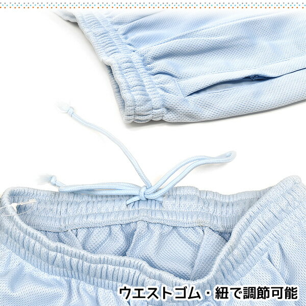 ウエストはゴムで楽!また、付属の紐で調節可能です。